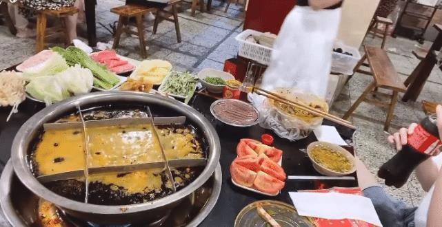 重庆火锅出了名的好吃,蒋依依刚下飞机就喊饿,和姐姐一起到巴倒烫吃饭,九宫格看着特别辣。