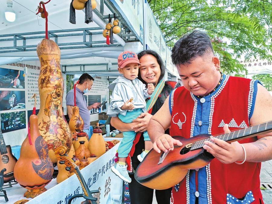 6月10日,昆明市通过市级主会场、各县(市)区分会场80余个非遗宣传展示系列活动,特别推出了“非遗乡村旅游”主题活动,开展了乡村非遗旅游、非遗展演、跟着大师学非遗、非遗展示体验、数字非遗寻宝、乡村非遗市集、“戏曲进乡村”文化惠民演出等活动,涵盖宝峰贴花(晋宁)、传拓、安宁扎染、掐丝珐琅彩画、剪纸、菱角、滇式风筝、斑铜、彝族(撒尼人)刺绣、昆明微雕、皮雕、古船船模营造、天宝斋制墨、豌豆粉等30余个昆明非遗项目。此外,与线下同步,还推出“金牌导游话非遗”、“跟着大师学非遗”、昆明公共文化云“云上非遗”等线上直播。