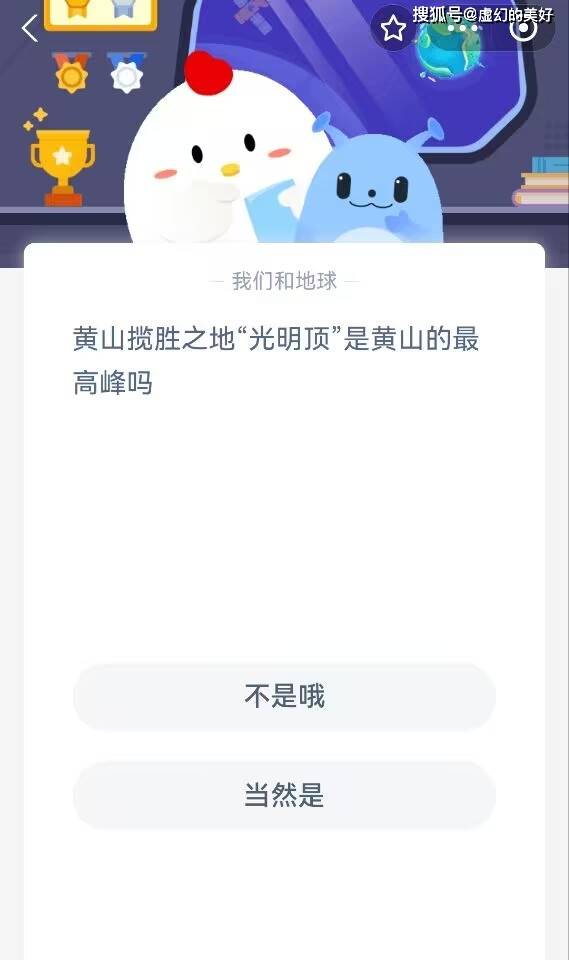 大家好,我是六月。6月25日的蚂蚁庄园知识问答已经更新啦,我们来看看今天的题目是什么吧。今天的蚂蚁庄园小课堂的题目是:黄山揽胜之地“光明顶”是黄山的最高峰吗?蚂蚁庄园给了我们两个答案选项,分别是A(不是哦)和B(当然是)。不知道答案的小伙伴不要着急,下面就和六月一起来看看正确答案吧。