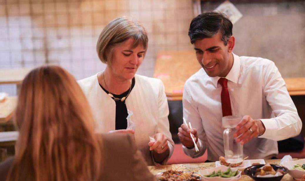 苏纳克一手拿着玻璃杯,一手拿着筷子,熟练程度就像经常使用筷子的人一样。很多网友都说他入乡随俗太快了!
