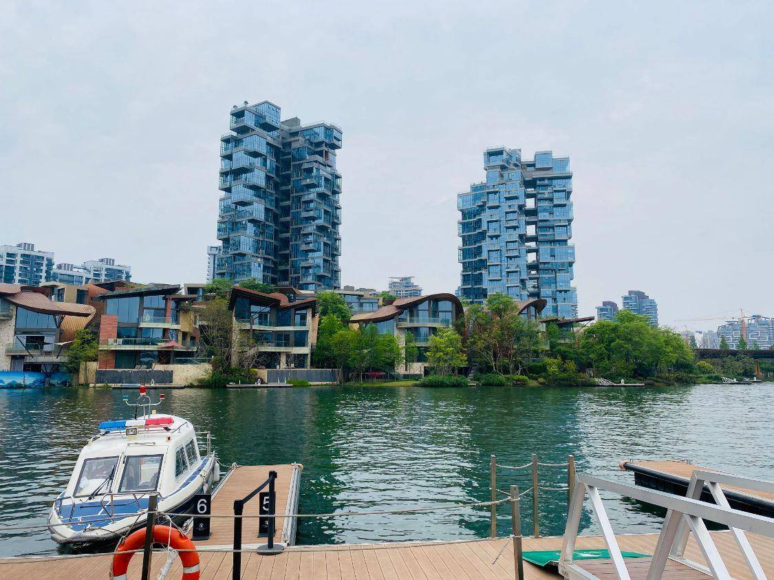 这些住宅包括阁楼公寓、平房,当然还有大型湖畔别墅。从这边看,尤其是那些湖边的别墅,可以看到三层楼。有些人有游泳池、船和快艇。孩子们尤其会制作有趣的结构。这样的湖景房在成都确实很少见。成都是一座既不是河岸也不是海洋的城市。因此,很多人都梦想在成都有一套这样的房子,但是这里的价格确实很贵。