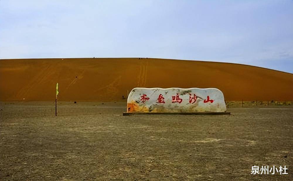 远远望去,鸣沙山数十座沙丘连成一片。全部高约百米,棱角分明,犹如手工雕刻而成。这里有一个非常有趣的自然现象。离他们不远,经常能听到鸣沙山传来雷声和号角声。风吹过之后,它上下嗡嗡作响。这种现象可能就是鸣沙山名称的由来。