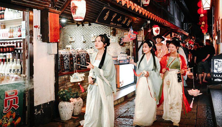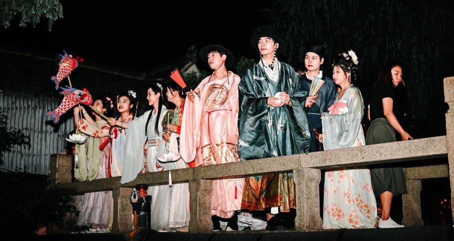 据了解,为推动古镇夜经济品牌化,青浦区以汉服为载体,依托朱家角古镇的历史风貌,打造沉浸式汉风夜游节,带领游园者“穿越千年”,体验古人的快乐,“文化搭台,经济唱戏”,助推古镇夜经济高质量发展。