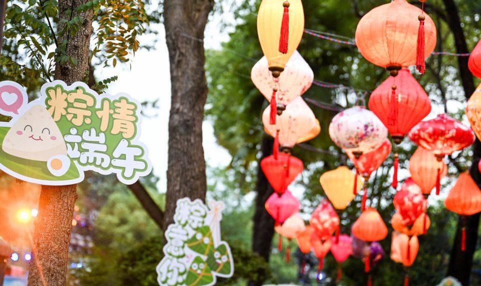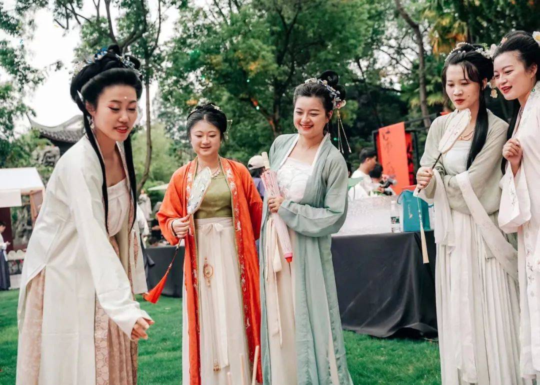 除了灯光表演引人注目外,放花灯、套圈、投壶等极具氛围感的汉风小游戏也分布在课植园的各处,不少游客纷纷前往,沉浸式体验古风雅事。“趁着端午假期,带孩子感受一下传统文化,这里古色古香的氛围非常浓厚!”市民董先生说。