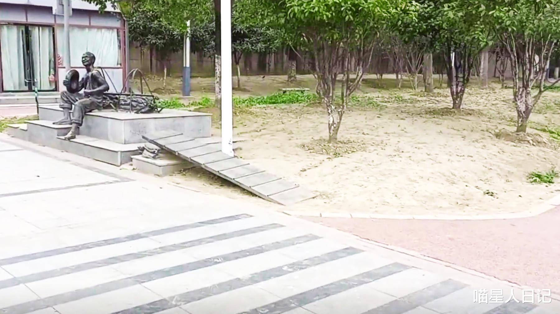 继续靠近拱门以查看更多细节。比如,路边建了一座雕像,背负着担子的农民坐着休息。黑色的外观透露出一种勤奋的气质,与码头的文化场景很相似。走近码头门板,左右为门板主体部分,用带状石雕成,有线条,中栏上刻着“汉阳码头”四个大字。门拱中间的门洞之间的距离并不宽,这在现实场景中可能不太实用,而且太窄了。牌坊临河,没有路,用栏杆锁住,只是一条景观雕塑。