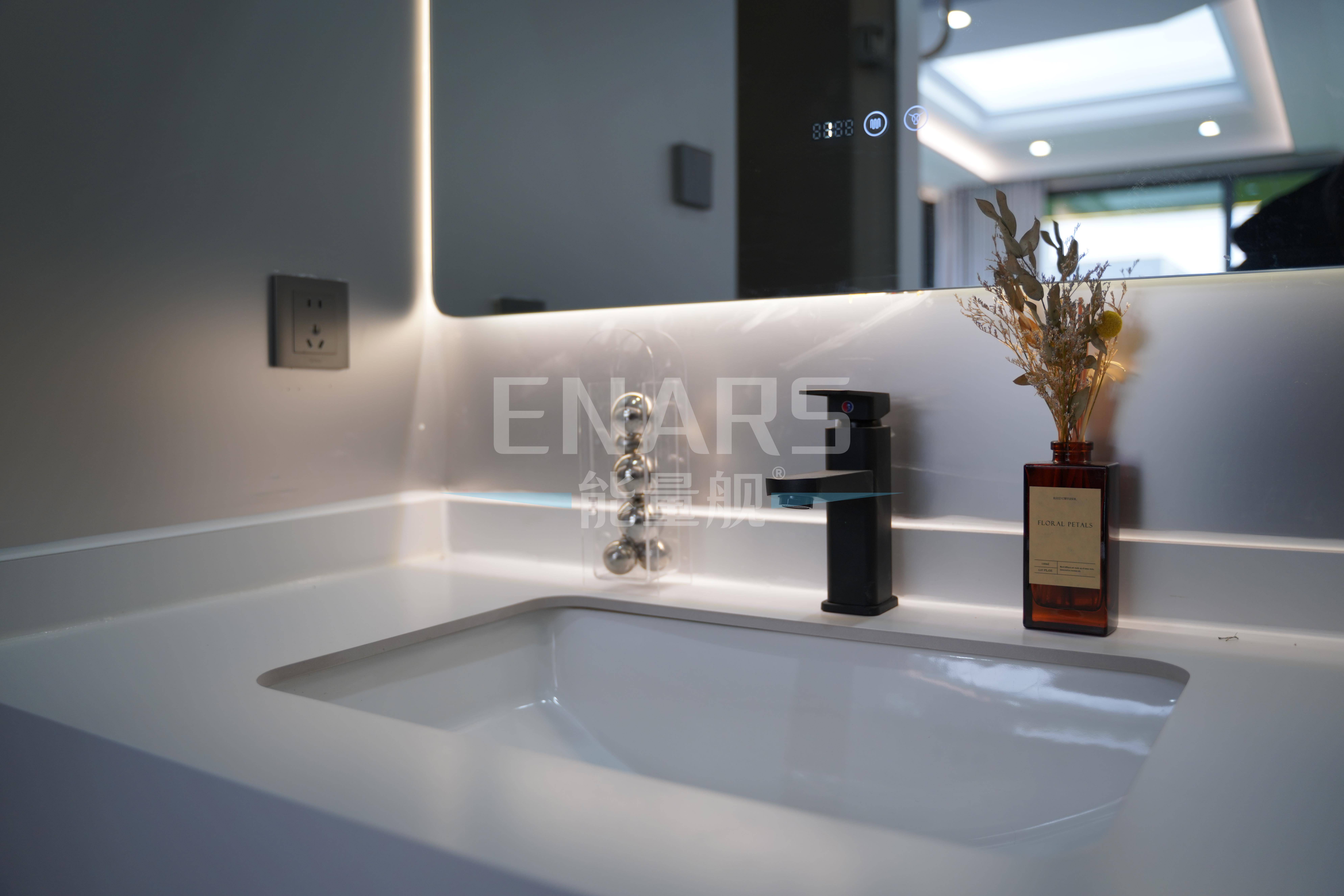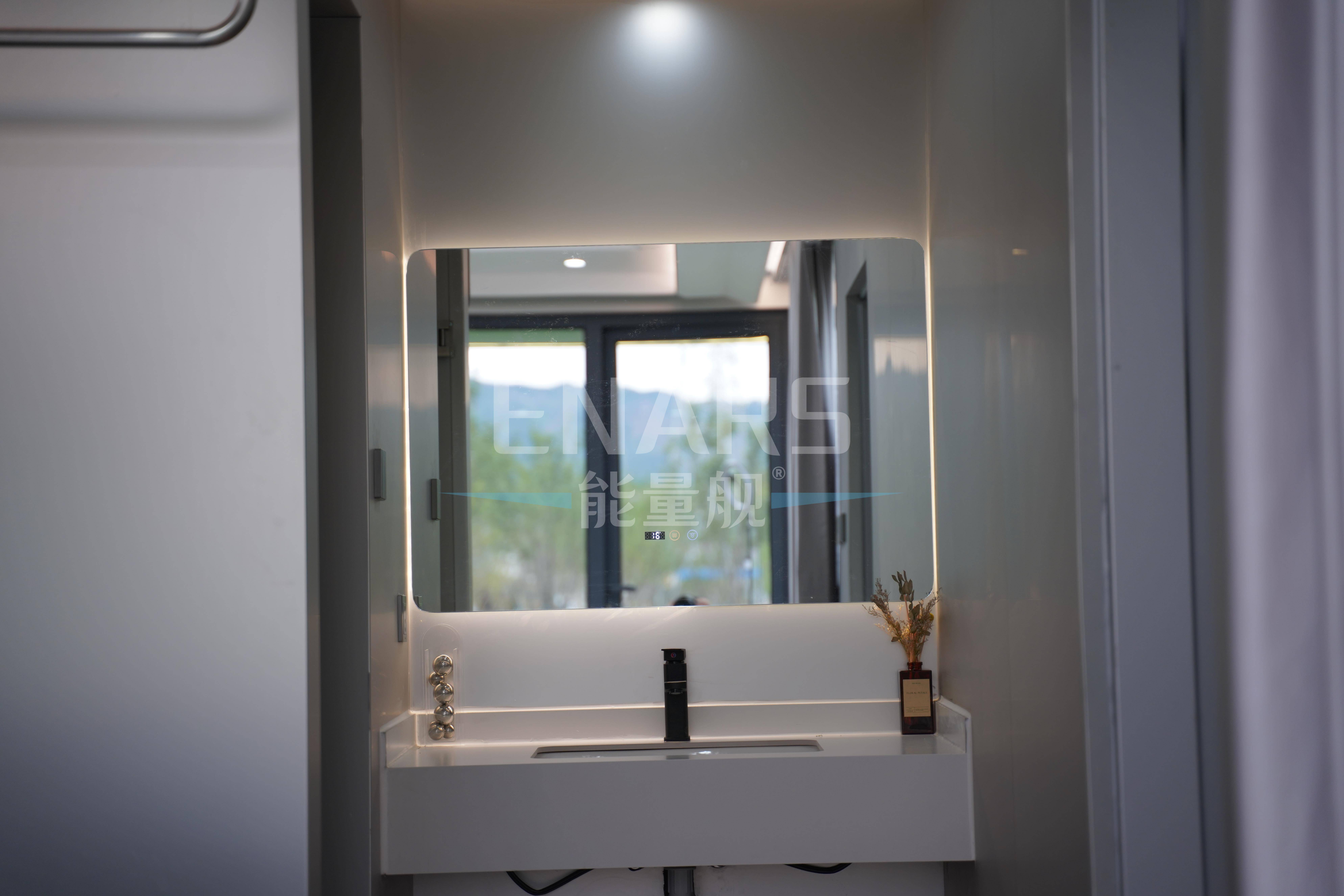 干湿分离的浴室,三面环窗的全景视野与天窗,以其防风隔热的需求,为入住的用户提供了宛如高级酒店的住宿体验。