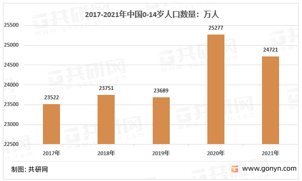 随着二胎和三胎政策的放开,我国儿童人口数量有所增长,2021年我国0-14岁儿童人口约为2.47亿。