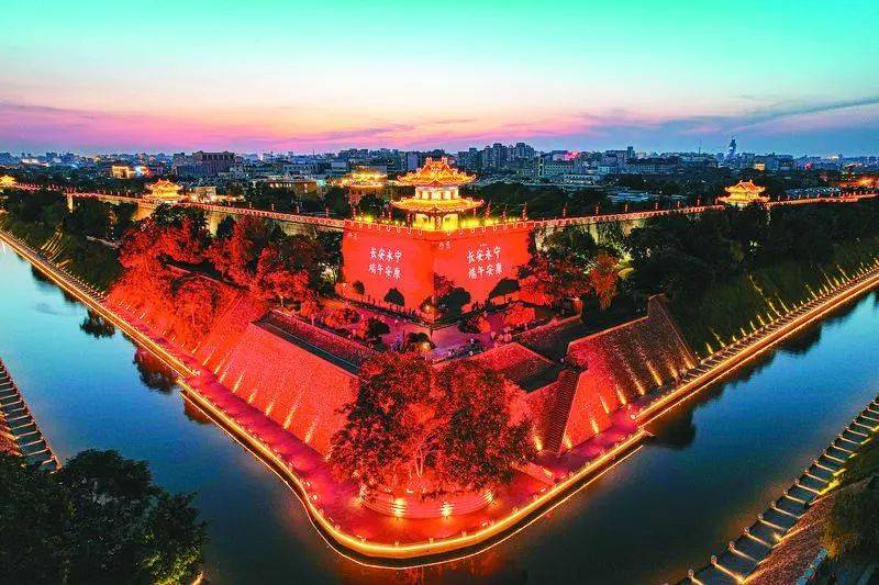 端午假期期间,西安城墙景区用璀璨的光影秀在西南城角、东南城角墙体上展现“长安永宁 端午安康”等字样,在营造欢乐、祥和的节日氛围的同时,向市民和游客送上真挚的祝福。(西安报业全媒体首席记者 李明 摄)