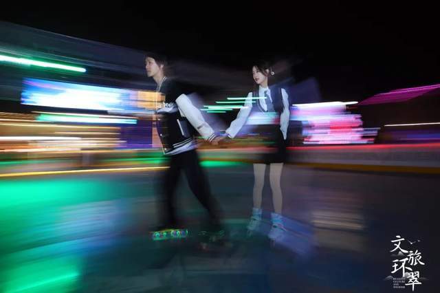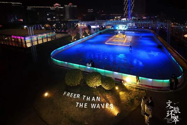 各个摊位的灯火依次亮起,小吃街、滑冰场、咖啡店、露营餐厅、星空集市……五彩缤纷的内容填充了整个广场。