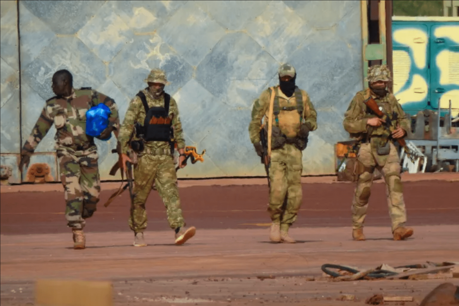 马里北部,三名俄罗斯雇佣军(右侧三位)
