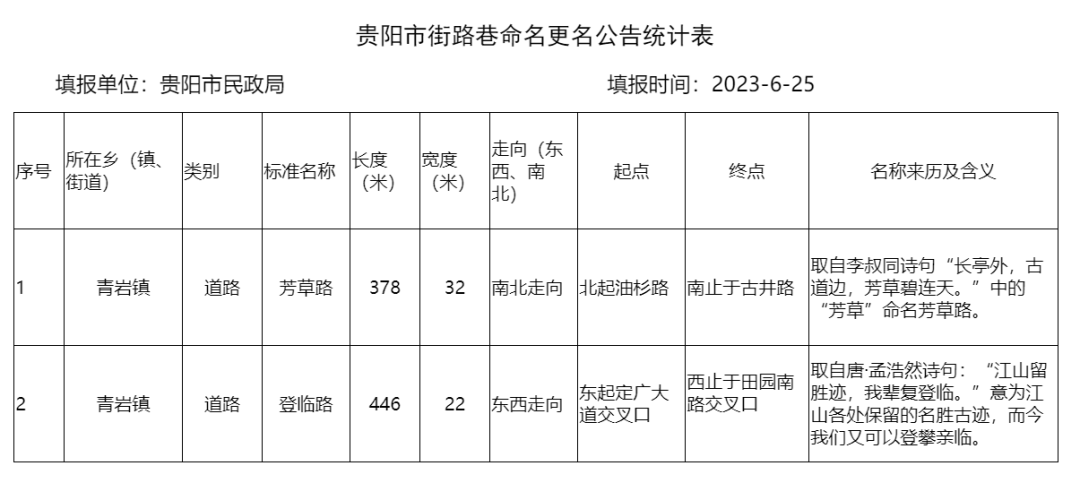 近日,贵阳市民政局网站发布地名命名更名公告,具体内容如下: