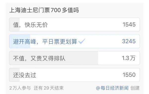 在网上的一项#上海迪士尼门票700多值吗#投票中,有1.3万的网友投票认为不值,人太多了,入园大多数时间都在排队: