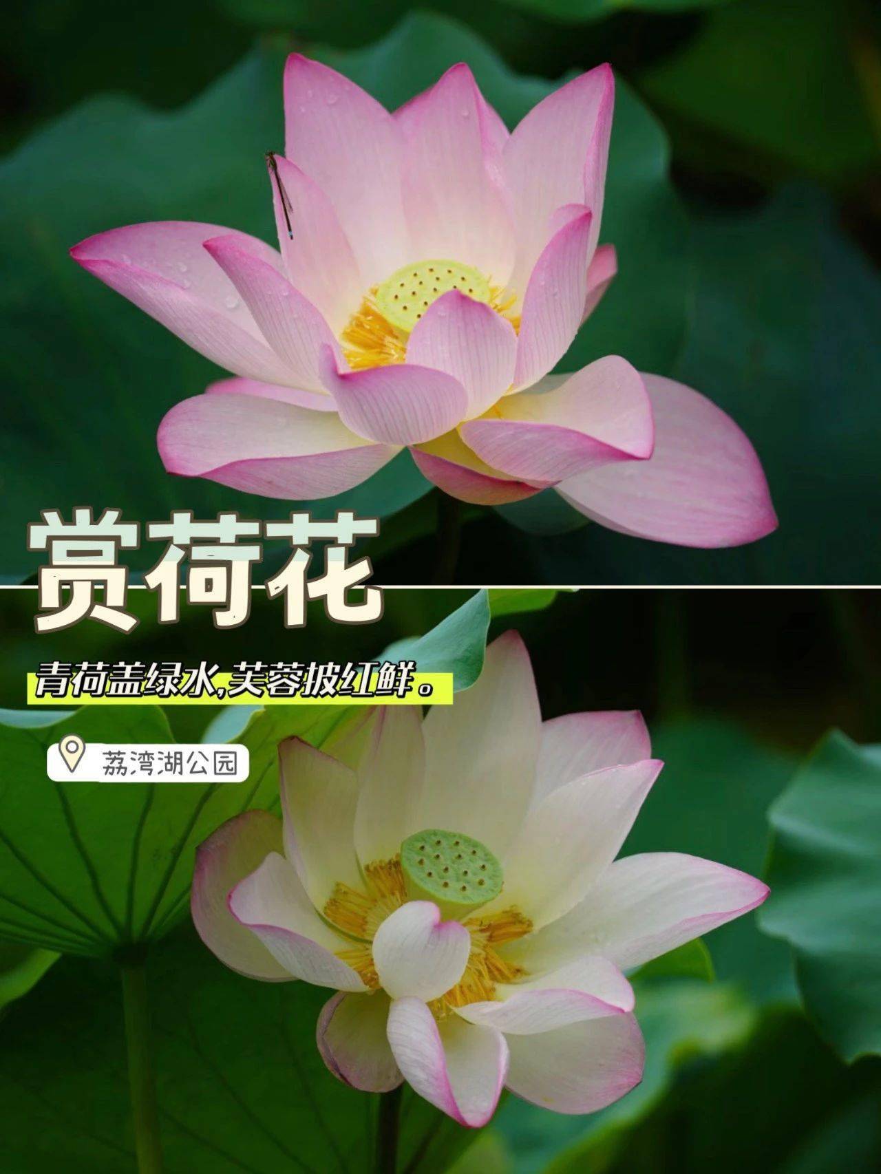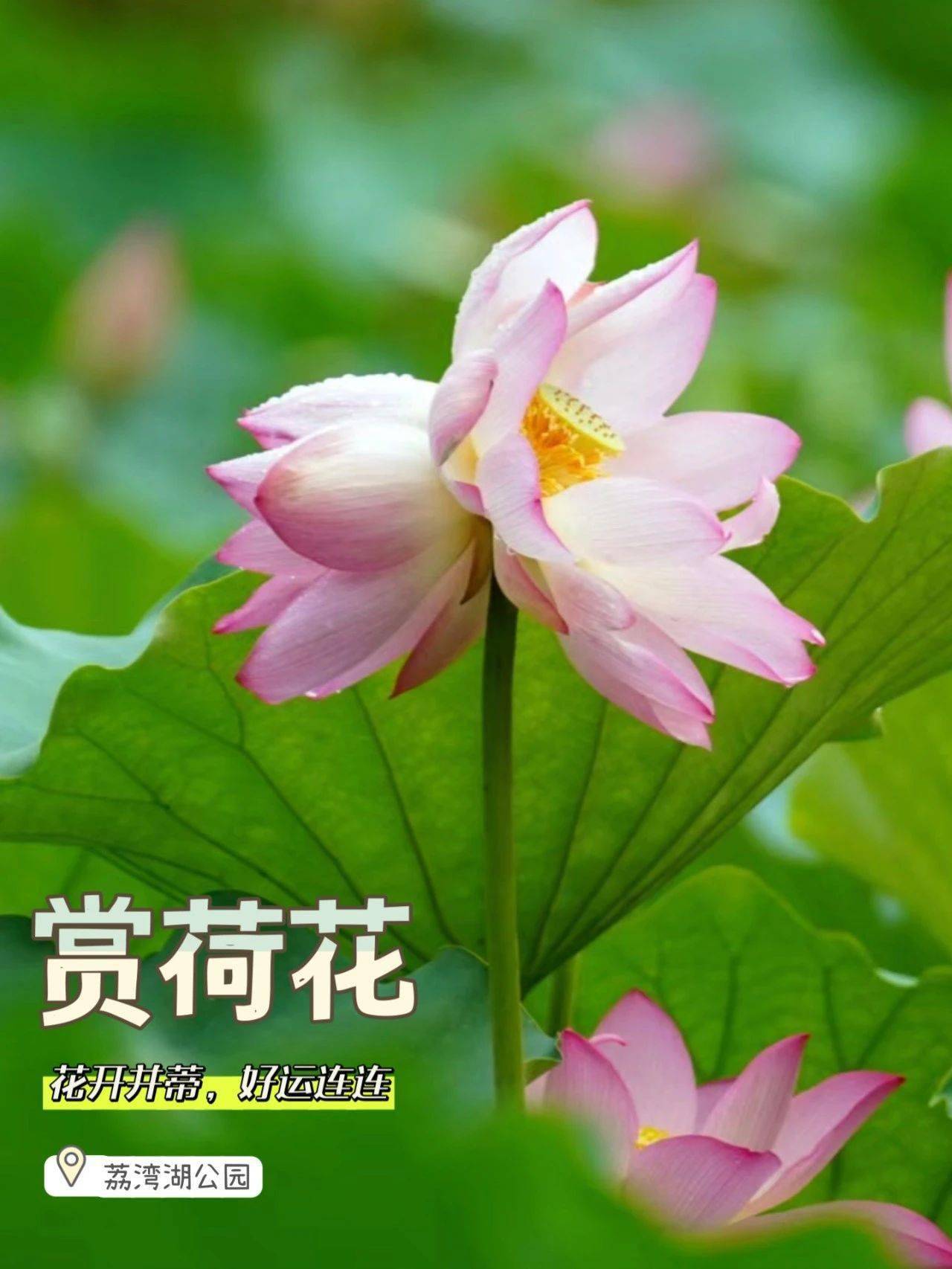 📝小贴士:并蒂莲位于荔湾湖公园北门附近,快去接好运吧!