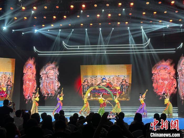 在兰州城市推介会上,现场舞蹈《千手观音》精彩上演,展现了绚丽多彩的西北风情。 冯志军 摄
