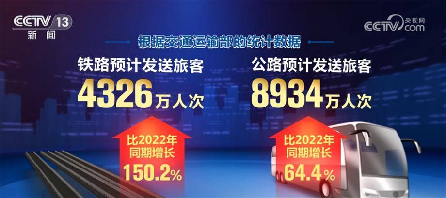 端午假期,全国铁路、公路、水路、民航预计共发送旅客14047万人次,比2022年同期增长89.1%。其中,铁路预计发送旅客4326万人次,比2022年同期增长150.2%;公路预计发送旅客8934万人次,比2022年同期增长64.4%;水路预计发送旅客253万人次,比2022年同期增长99.3%;民航预计发送旅客534万人次,比2022年同期增长287%。