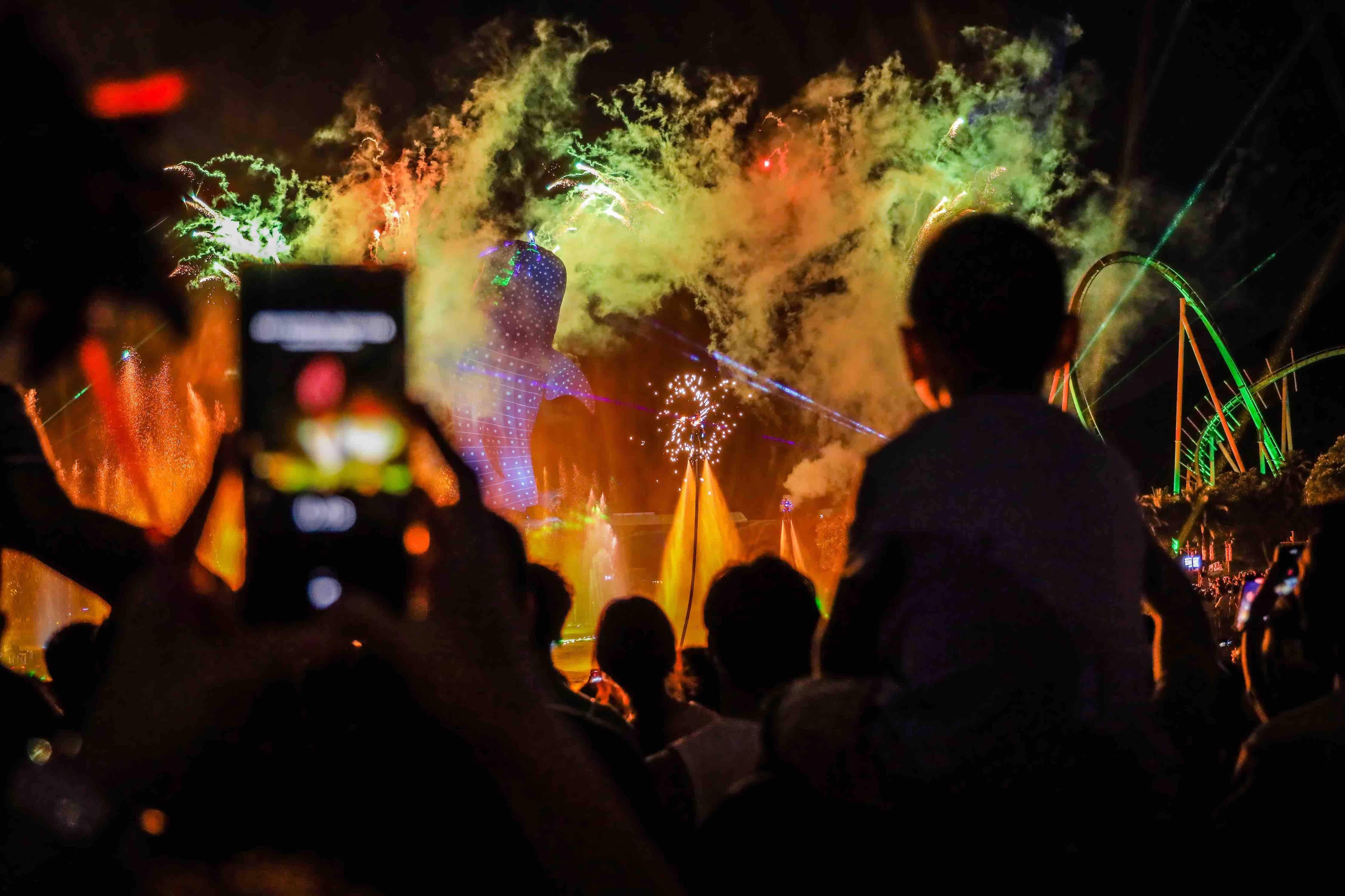 烟火灯光表演同样亮点颇多。游客们不但能看到数百种烟花在夜空中绚烂绽放,还能目睹300台无人机在光与影的交织中直冲云霄,激光棱镜穿透烟雾与水花,水上飞人高空飞行与“鲸鲨”并肩。游客还能在滨海河岸亲手燃放手持烟花等各式浪漫烟花。