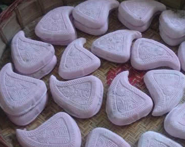 红桃粿去桃果造型而得名,桃果象征长寿,故反映祈福祈寿的愿望,主要食材是大米、白面、糯米。