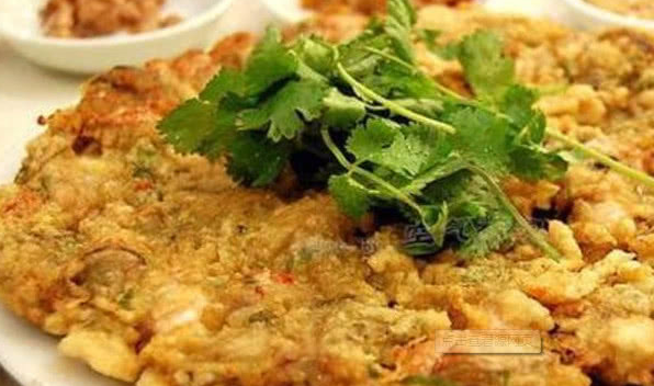 蚝烙是广东潮汕地方的特色小吃,台湾省称为蚵仔煎。蚝烙是用地瓜粉溶于水,拌葱珠,在锅上煎,加上海蛎和蛋花。