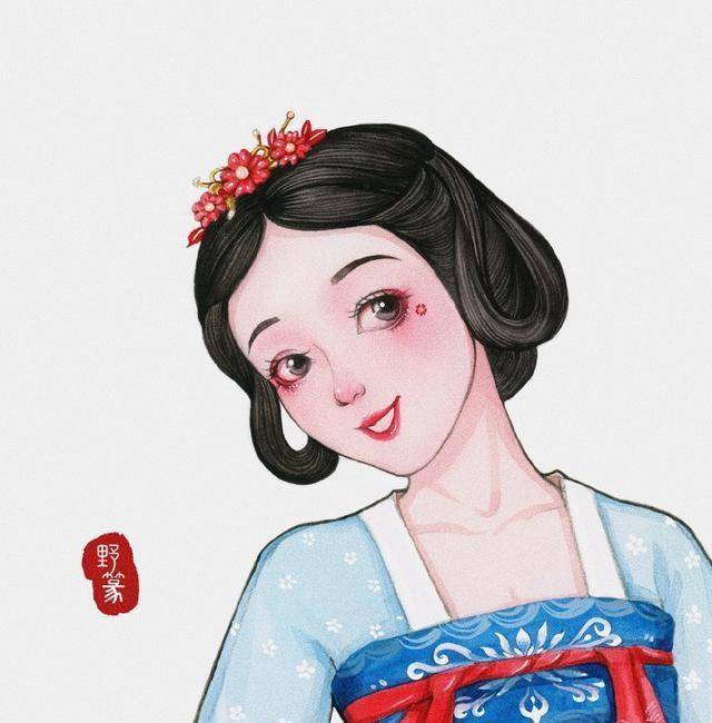 《白雪公主》中的汉服看起来很眼熟。和动画里他穿的衣服颜色很像。这真是一种很好的感觉。发型与原著中的发型相似,但有一些变化。她很有我们风格的气质,不仅是眼角画的妆,还有头上插的发饰。