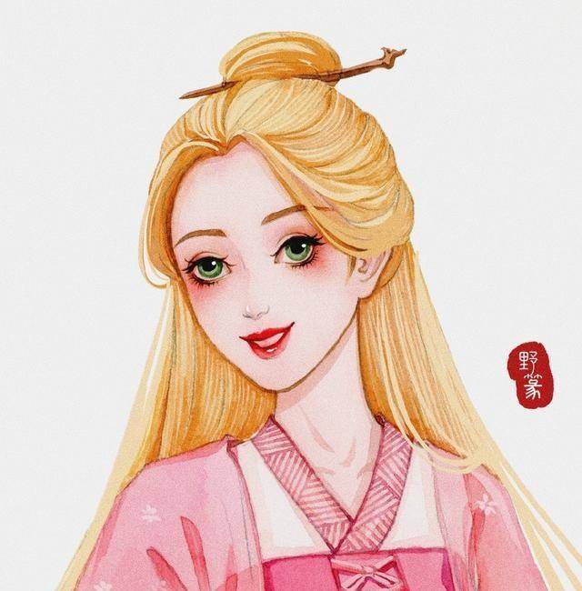 在迪士尼公主系列中,长发公主的头发应该是最特别的。它很长。我看动画的时候就想知道她为什么不把头发盘起来。长发公主穿着汉服,头发简单。我设计了头发,把它扎成发髻,然后别上发夹,这与原版有两种风格。