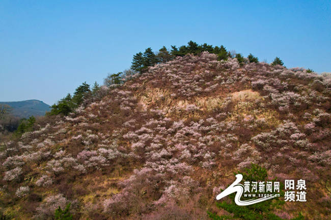 人间四月芳菲尽,东梁桃花始盛开。随着气温回升,大地回暖,山西省盂县东梁乡寺家坪村迎来了满山尽是“映山红”的季节,野生的山桃花次第开放,粉红色的桃花挂满了枝头,一簇簇野桃花迎着风肆意绽放,形成漫山遍野的粉红色花海。