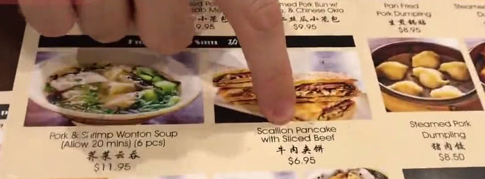 这一位外国吃货得知附近新开了一家中餐厅,兴高采烈的来到这餐厅,抵达餐厅的时候,发现里面的人非常的多,然后就在里面找了位置坐下去,看了放在饭桌上的菜单,发现菜单里面的美食都非常的诱人,真想每一种都尝试一遍,可是钱包不允许,最后就点了一碗牛肉麻辣烫。