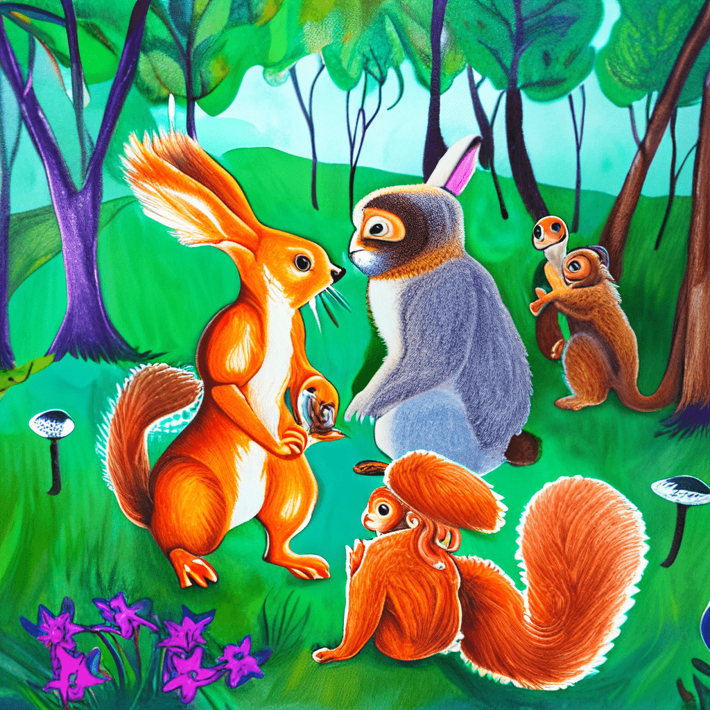 此时,我们的小松鼠导游站在一块巨石上,指着周围高大的树木问道:“大家知道这些树叫什么名字吗?”众人沉默不语,于是小松鼠便开口说道:“让我来告诉大家吧。”