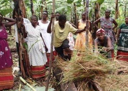 踩好的香蕉要放入地坑里,然后用茅草盖上,保持一个恒定的温度,让香蕉里的糖分在里自然发配成酒精。经过一段时间的发酵以后就可以取出来,刚发酵好的香蕉酒酒精含量比较高,在饮用时必须要再加一些水。