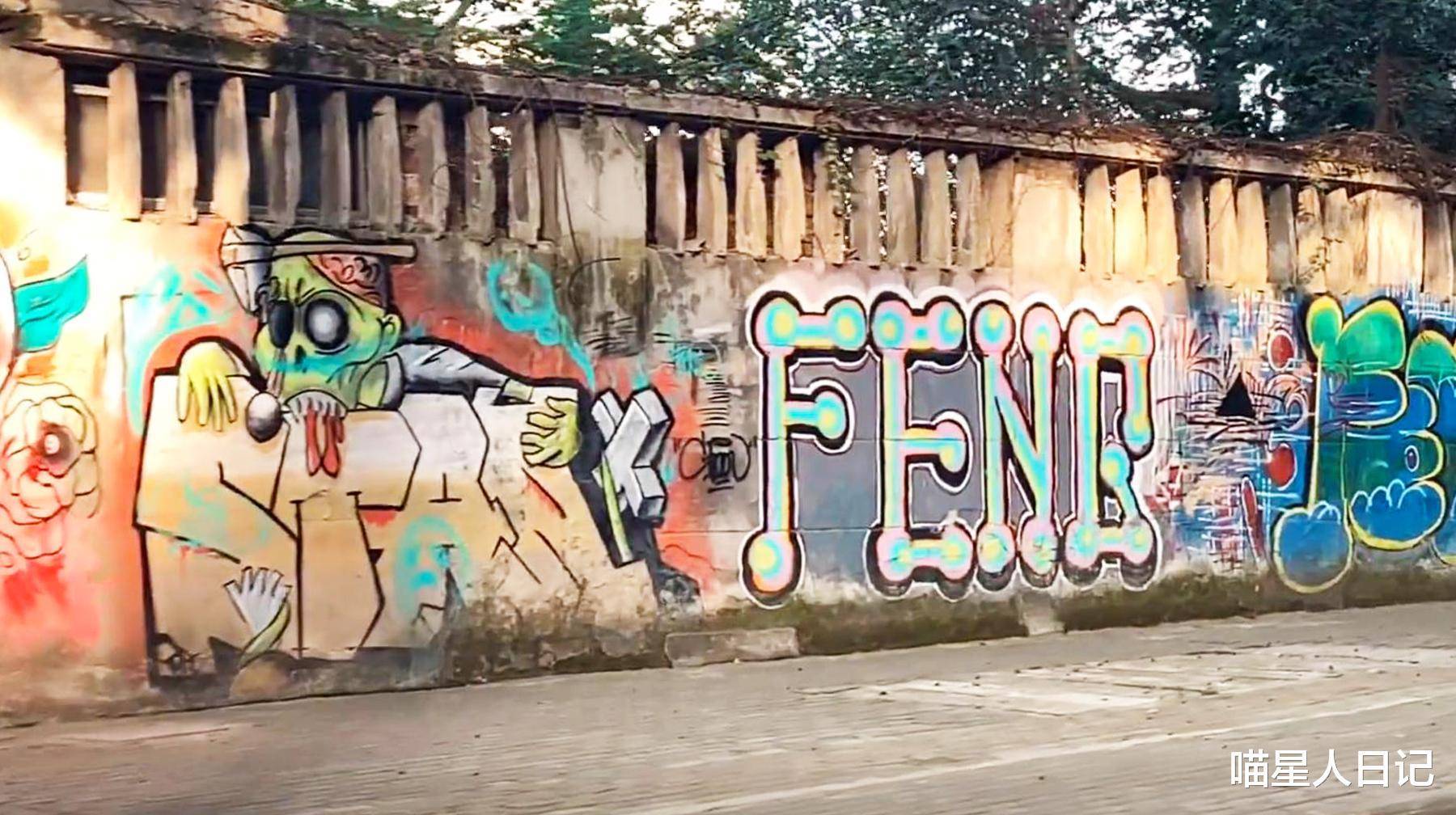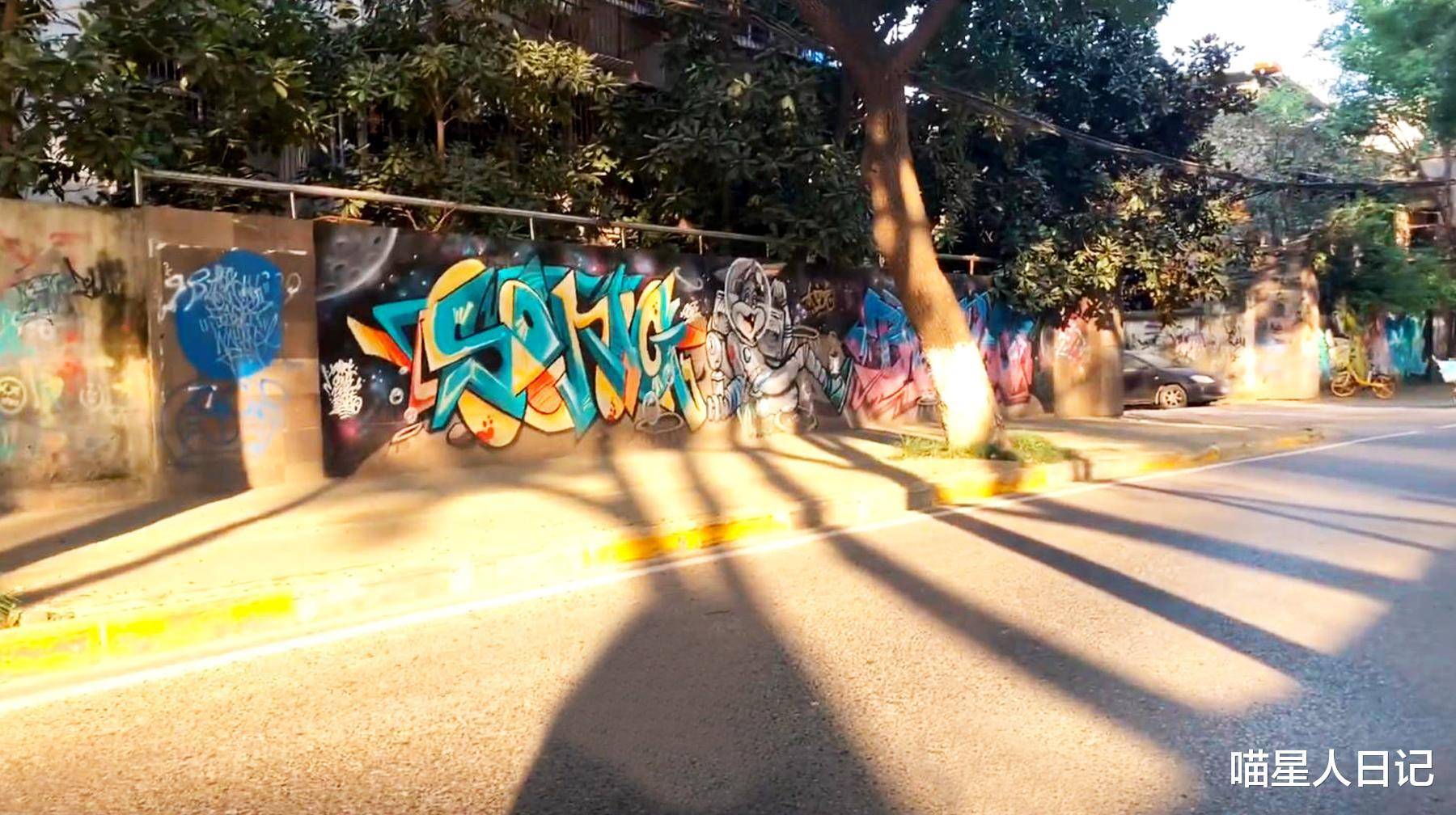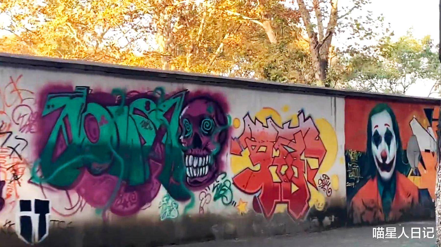 往前看,涂鸦丝毫没有减少。拆除施工前有一片区域,暂时用蓝色护栏板围起来。汽车不多,但外墙上到处都是涂鸦。从这段话开始,涂鸦的主题逐渐清晰起来,比如怀旧的涂鸦、画童年的小巷和建筑、月光和四个季节。科技涂鸦、汽车和火箭工业生产线、坚毅的人物、太阳、月亮和星星都融为一体。还有很q的食物和菜肴,堆在一起,虽然看不出来,但是颜色鲜艳,很夸张。还有涂鸦,文字得体,可读性强,但语言逻辑很奇怪,没有主题也不知道想表达什么。