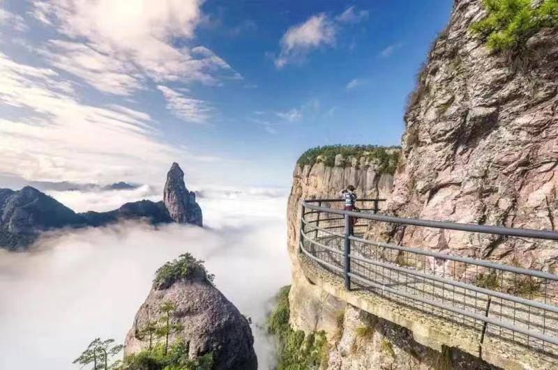 游览完神仙居到达山顶,你会发现,仿佛进入了仙境。山顶上飘浮着许多白云,给人一种很不寻常的印象。很多年轻人一大早就起床看日出,来到这里看日出。