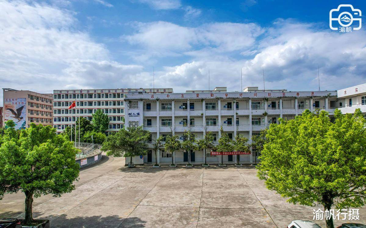 当我们升起无人机时,我们发现耀明镇虽然没有高楼大厦,但面积很大,街道交叉,车流量大。其中最好的建筑是位于琼江河畔的耀明小学。货物齐全的教育大楼和橡胶跑道铺成的运动场非常引人注目。