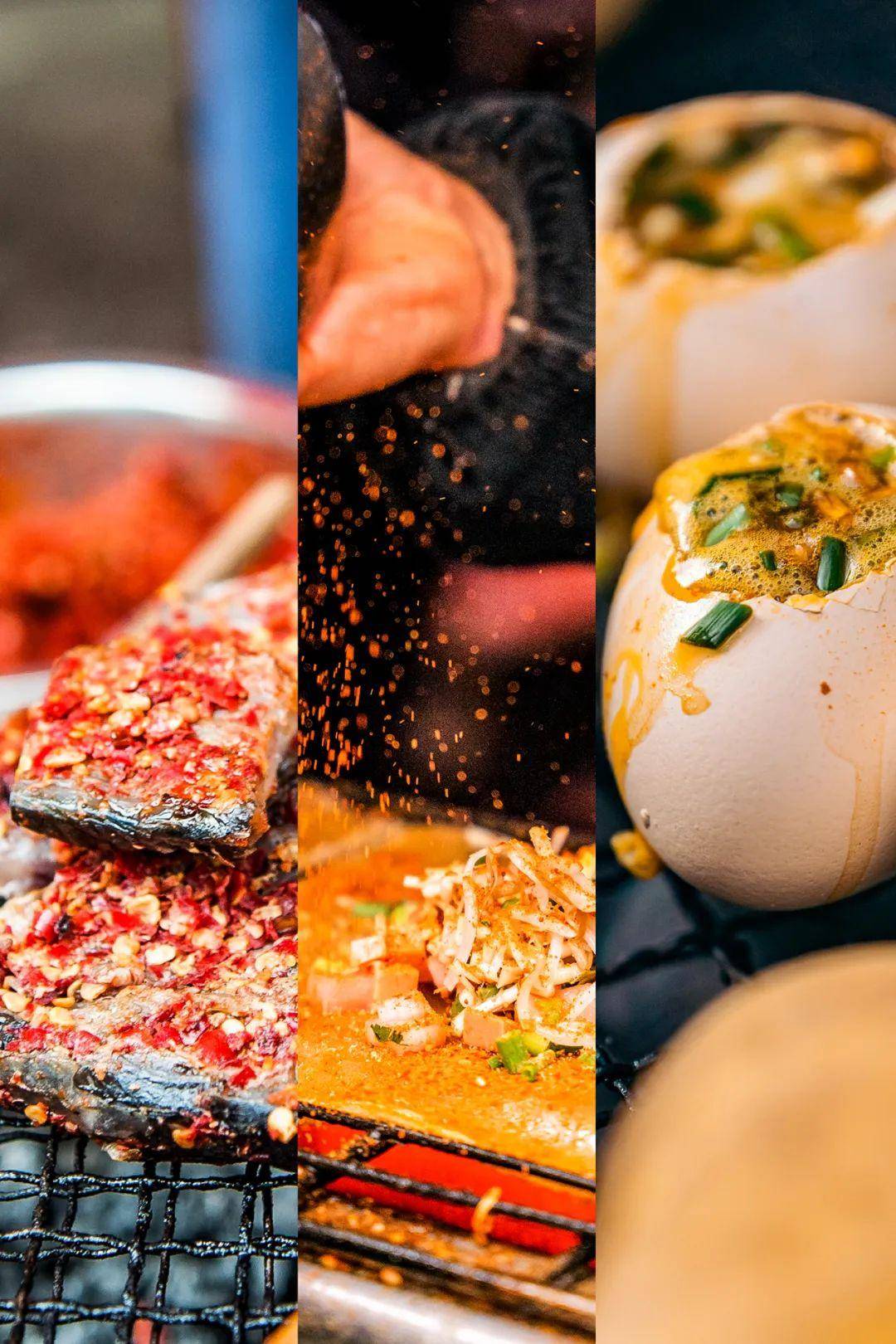 还有“烙锅”,夜市上的王者,用特制的砂锅把各种食材摊在上面连煎带烙,像是“铁板烧”,却更油润。无论烙的是青菜、豆腐干还是五花肉,辣椒面加上碾碎的花生粒做成的蘸料总是最受欢迎。这几年流行“活油烙锅”,是在砂锅正中间开一个孔洞放上蘸水碗,碗里则加入猪油与干辣椒的组合。随着烙锅的升温,猪油也开始滚沸,等于是在食客面前炸出一碗喷香的油辣椒,更让人根本没法抵抗。