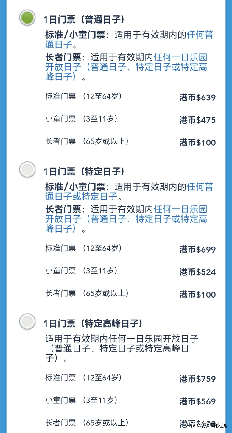对比来看,临近的香港迪士尼门票目前分为普通日、特定日、特定高峰日三档,门票价格分别为639港元(人民币584元)、699港元(人民币632元)、759港元(人民币694元)。