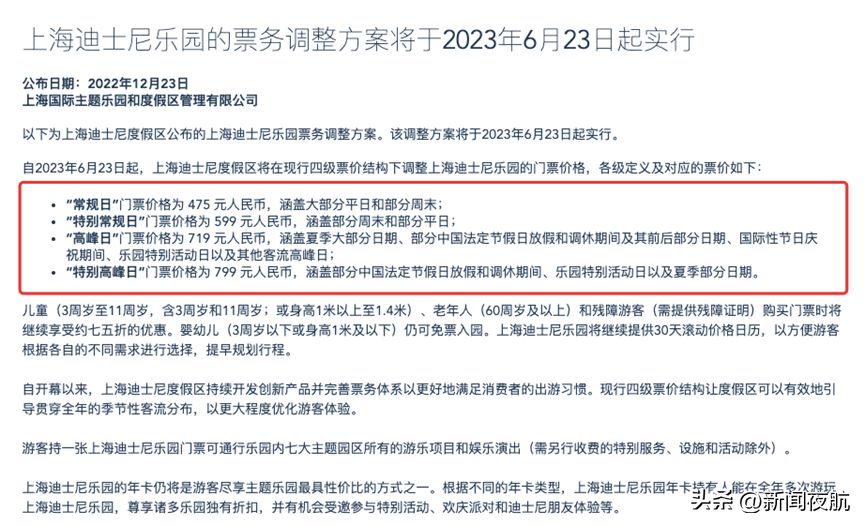 去年12月23日,上海迪士尼宣布将自今年6月23日起实行新的票务调整方案,这是上海迪士尼开园7年来第四次涨价。