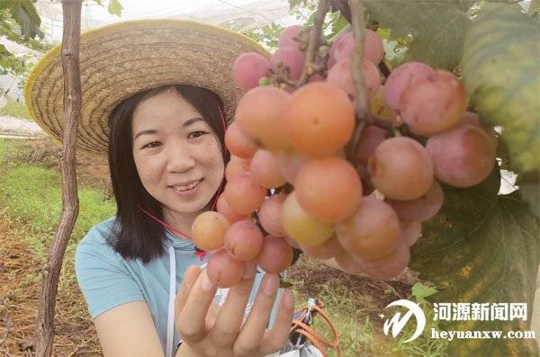 端午假期,我市乡村不少葡萄基地进入采摘期。6月22日,记者走进源城区埔前镇的锋之源葡萄园,一串串诱人的葡萄映入眼帘,格外喜人。不少游客带着全家人进果园享受采摘的乐趣。来自市区的刘先生说,这里离市区近,葡萄品种也多,有阳光玫瑰、无核黑提、自然巨峰、妮娜皇后等,环境也好,小孩子很喜欢。基地负责人黄仕梅说,除了葡萄外,基地还种植台湾释迦、台湾青花梨、圣女果、西瓜、泰国青柚等水果,可实现游客一年四季摘果的心愿。