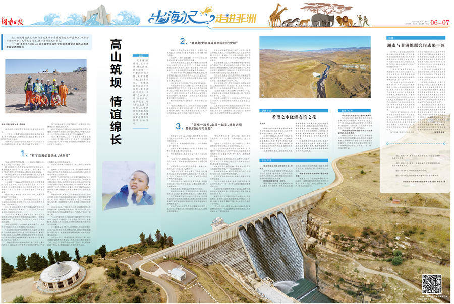 尼罗河、刚果河、尼日尔河、赞比西河、奥兰治河……广袤的非洲大陆,大河奔腾不息。10多年来,一批批湖南建设者万里奔赴,在非洲的河流上,兴建10余座大坝,治水兴水、惠泽民生。在“高山王国”莱索托,从麦特隆大坝到高地大坝,湖南建设者连续书写筑坝治水传奇。