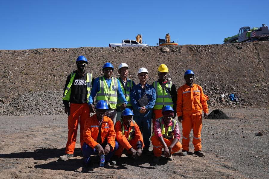 (4月24日,莱索托高地大坝项目,中国建设者和当地工人合影。)