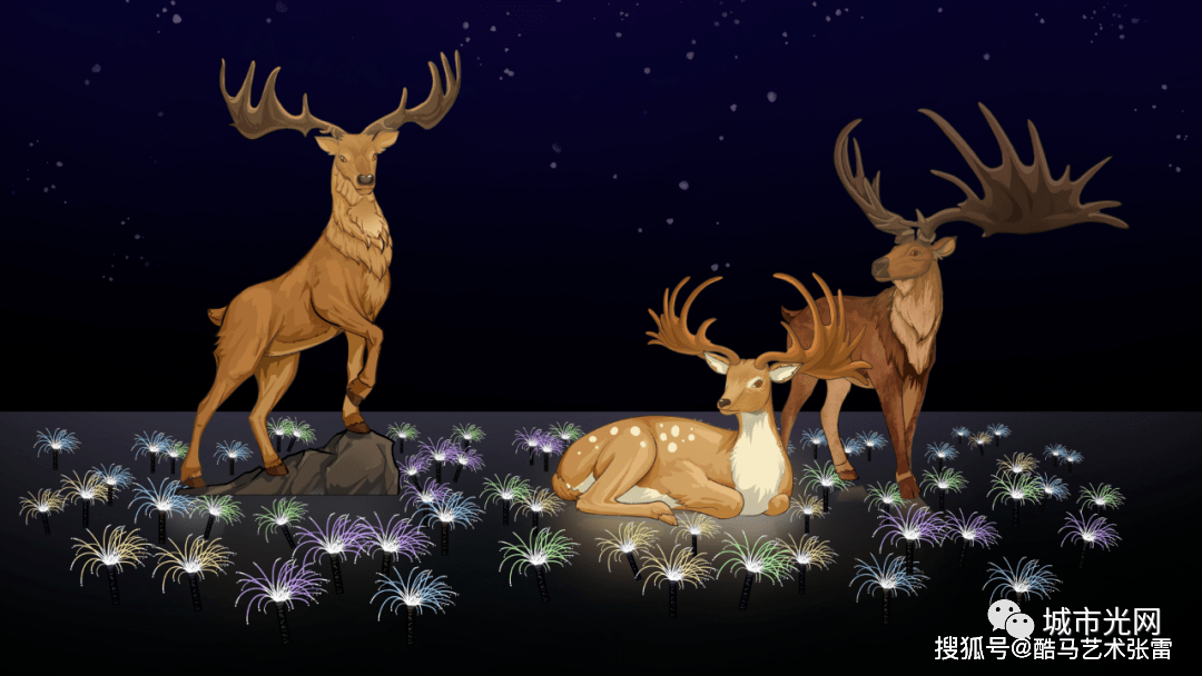 然而,生命总会有奇迹,跟随脚下五色发光的足迹,在星光点缀的草丛中,再次遇见大角鹿一家,它们最终找到适宜生存的乐土,无畏而永恒的生活……