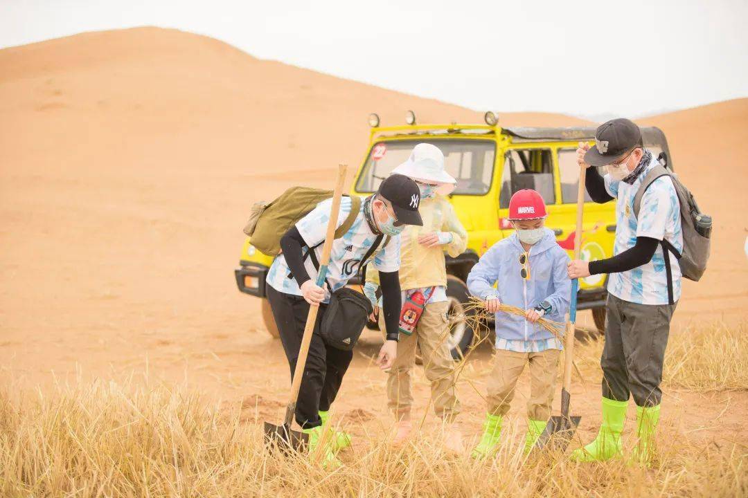 吃完丰盛的早餐,8:00领队将带领大家在营地里 学习沙漠定向、 沙漠研学课程,也会向大家介绍沙漠环保的课程-麦草方格,培养小朋友们的好奇心和责任感。