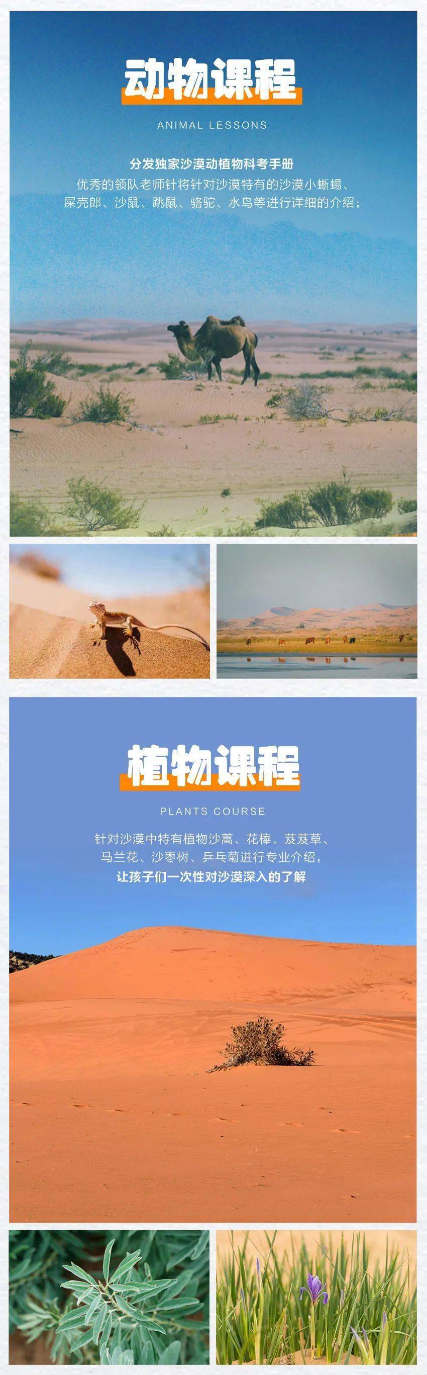 6.活动项目:动植物科考、滑沙、望远镜观星、搭建沙漠麦草方格等