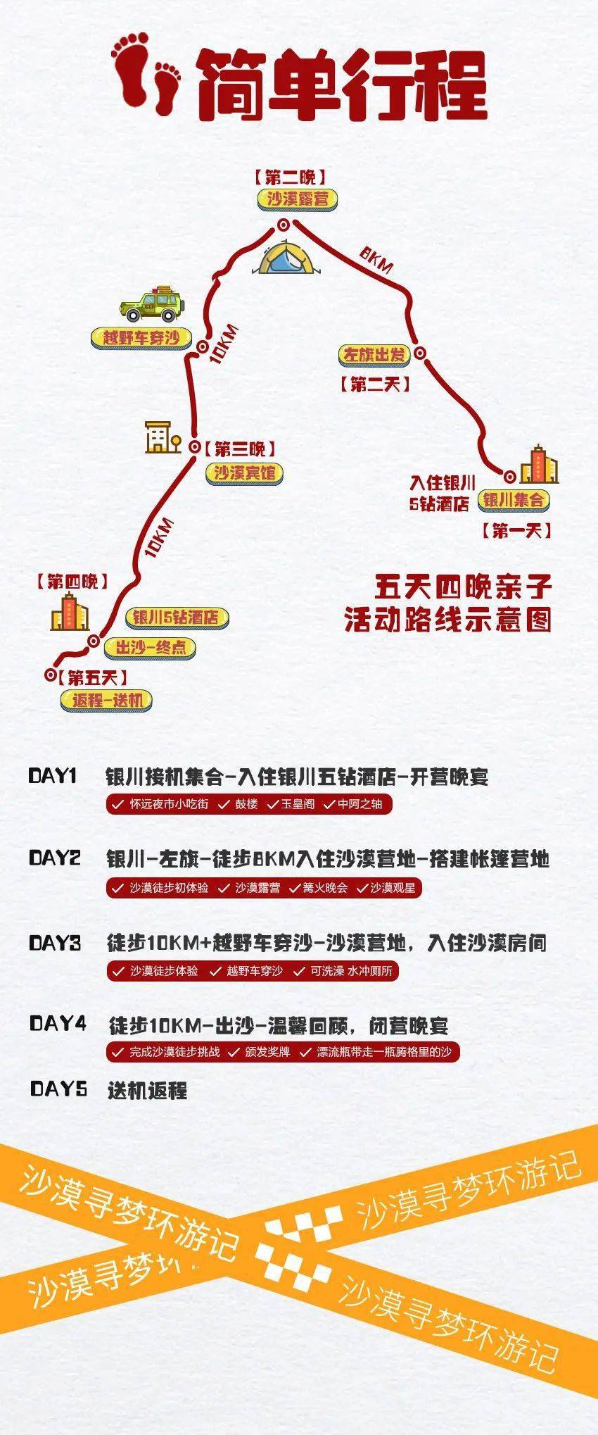 行程:徒步10km-出沙-温馨回顾,闭营晚宴