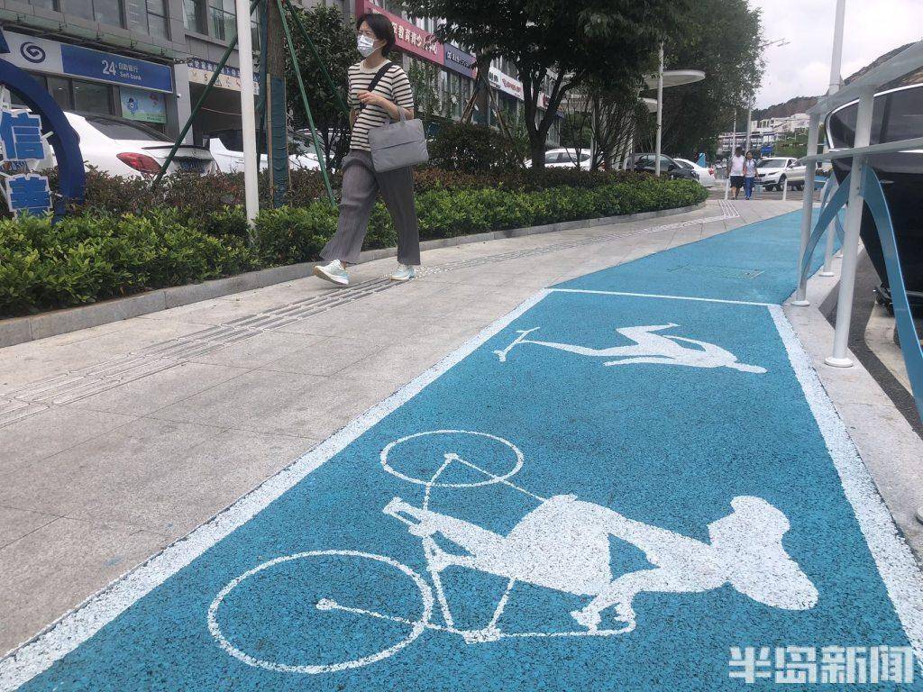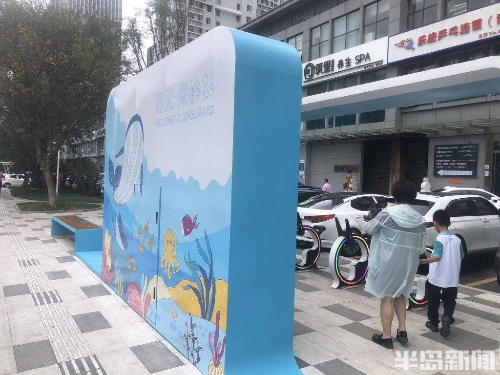 秦岭路改造工程结束后,一些路边的微景观设计很新颖,漂亮的凳子、运动图案、3D裸眼电子屏幕、月亮秋千等分外美观。在公交车站等车的间隙甚至可以踩自行车运动,成为一道风景线。