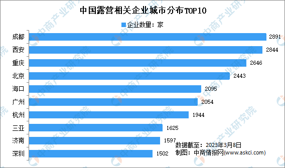 根据企查查数据,从城市分布来看,重庆现存“露营”相关企业2646家,位居全国前三。