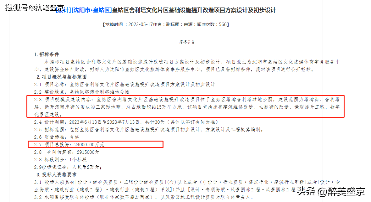 “舍利塔文化片区基础设施提升改造”报告中提及,该片区项目位于皇姑塔湾舍利塔滩地公园,建设范围为塔湾街、舍利塔路、新开河南岸街区围成的三角形地带,总占地约15万平,主要包括原有建筑的维修、主题街区改造、景观提升工程以及数字化景区的建设。