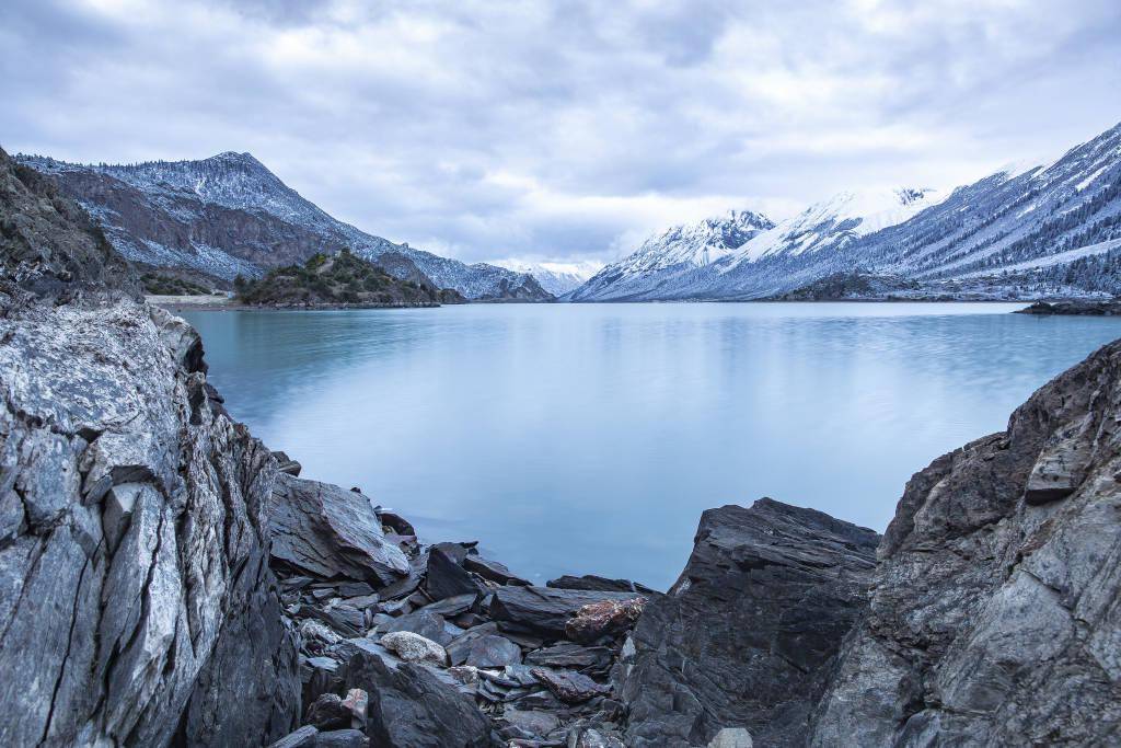 置身雪山之间,偶遇一潭天池,池水在灰黑色的山体、雪白的山峰衬托下,更显得湛蓝,似乎多云天空的一丝浅蓝是天池的返照。房世强/视觉中国(编辑:杨洁莹)