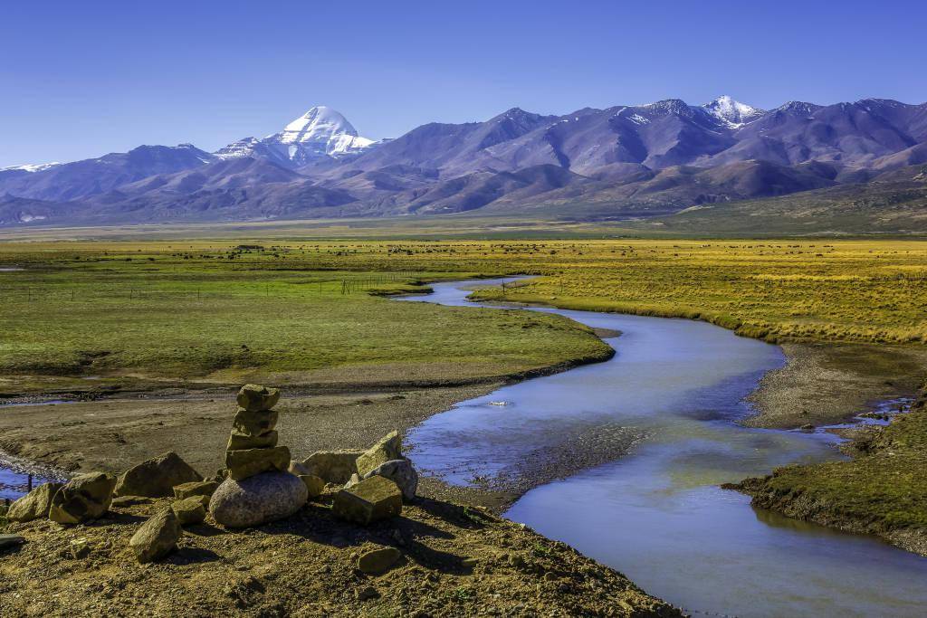 西藏阿里,沿着G219国道到达普兰,草原和湿地接壤融合,与远处圣洁的冈仁波齐峰一起构成了一幅生态画卷。卢志峰/视觉中国