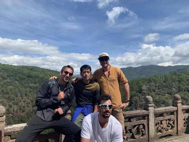 做旅游时候的濮正天,与外国游客在一起