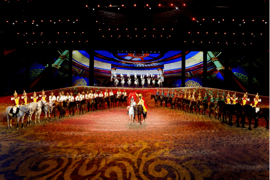 《千古马颂》是内蒙古艺术剧院打造的一部文化与旅游深度融合的全景式大型马舞剧。剧目以“蒙古马精神”为立意,通过讲述“我”——一个牧人之子的成长,折射出蒙古民族守望相助、追求文明进步的伟大历程,歌颂了马背民族开放包容的民族精神,展示了人与马、人与草原和谐共处的大美境界。
