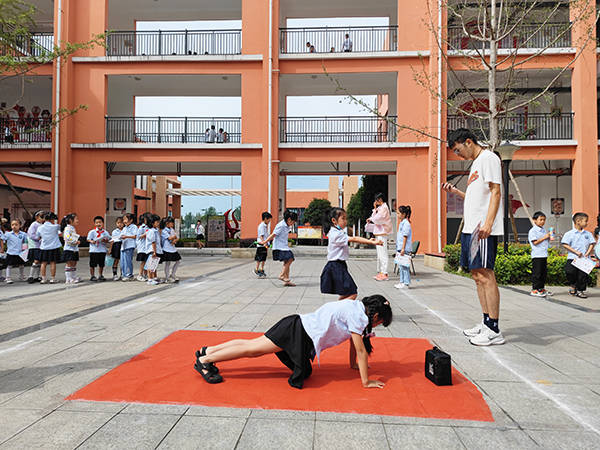 “加油,加油!”远处阵阵加油声传来,城南娃娃们快速甩动跳绳,用力向前伸,一跃、一跳、一动之间,尽显城南娃娃们的矫健灵活。