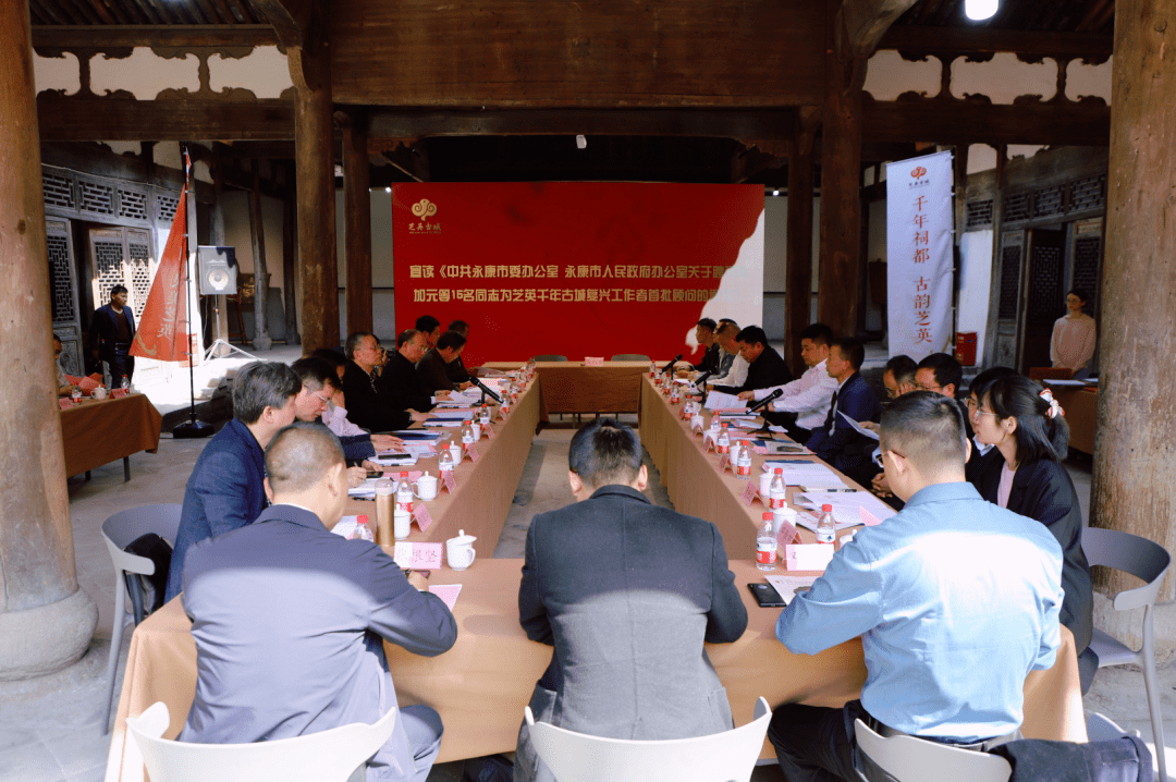4月2日下午,芝英千年古城复兴工作座谈会举行。芝英千年古城复兴工作首批顾问,浙师大人文学院、浙建美丽乡村建设有限公司、浙旅投资有限责任公司负责人,市领导胡勇春、胡潍伟、陈伟强参加。